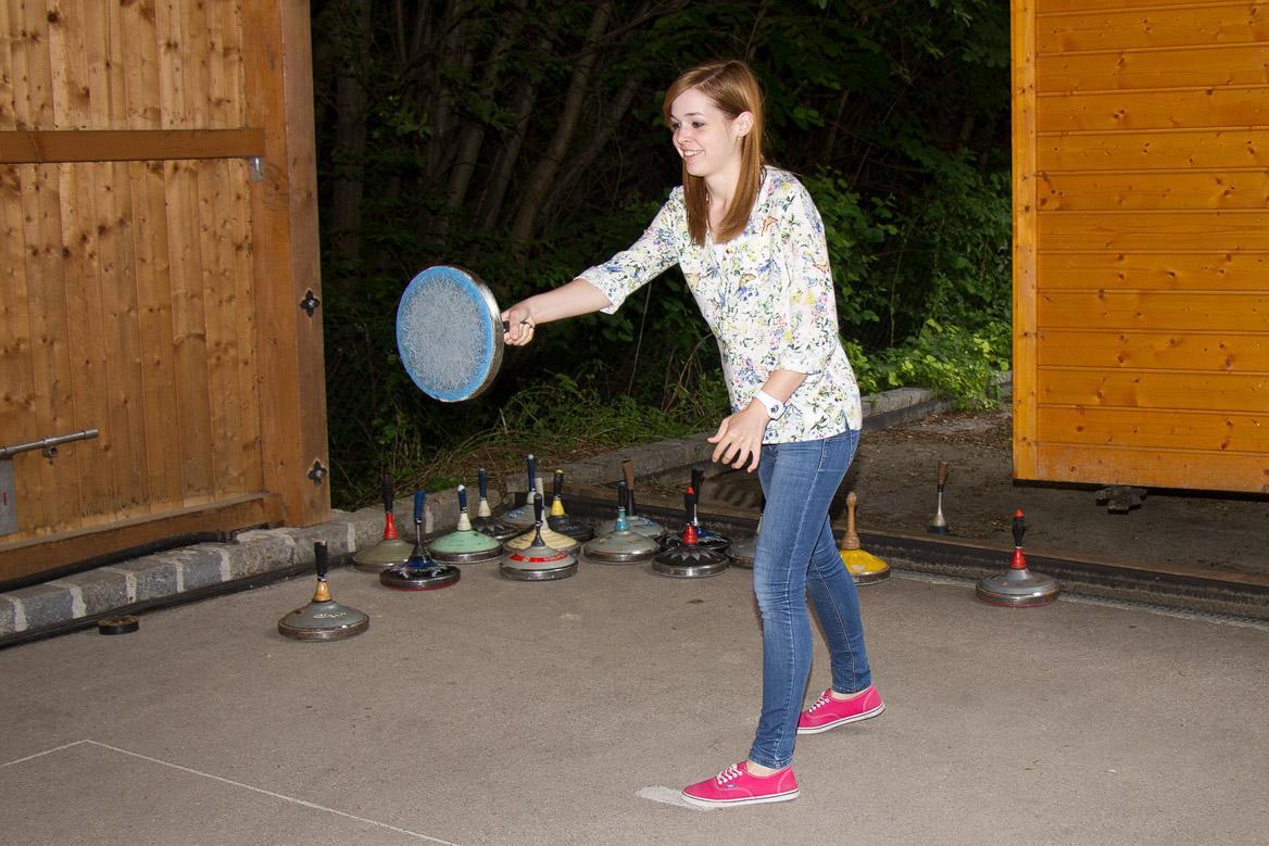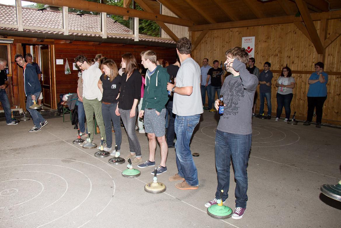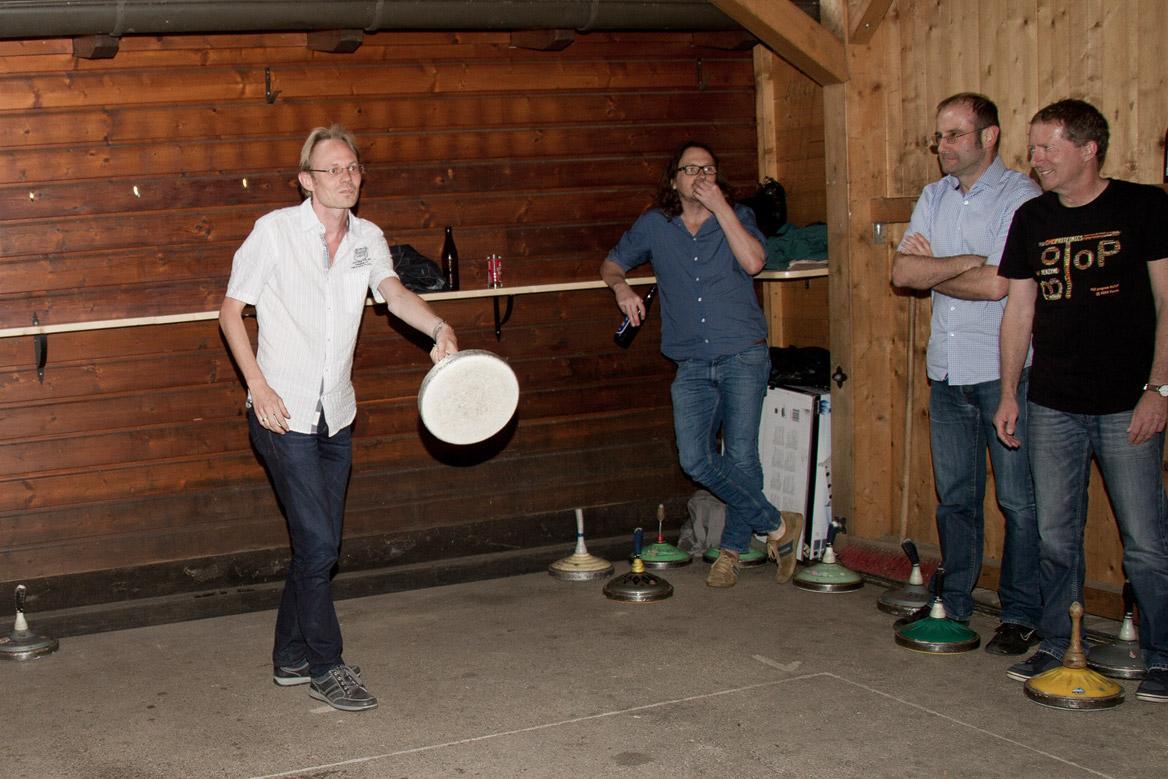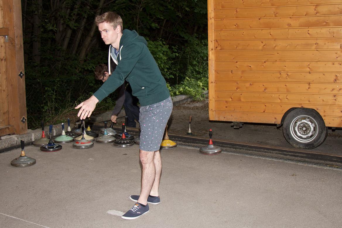 Wir hatten gar nicht so viele Stöcke und spielten auf beiden Bahnen.