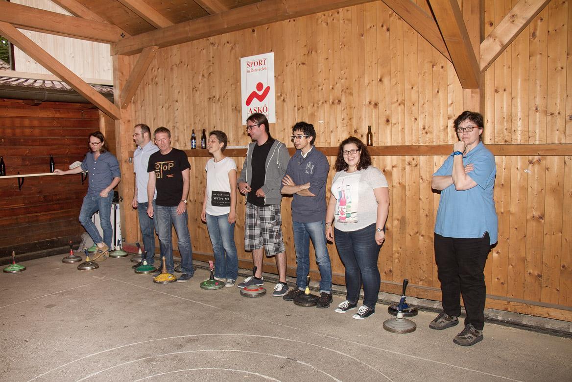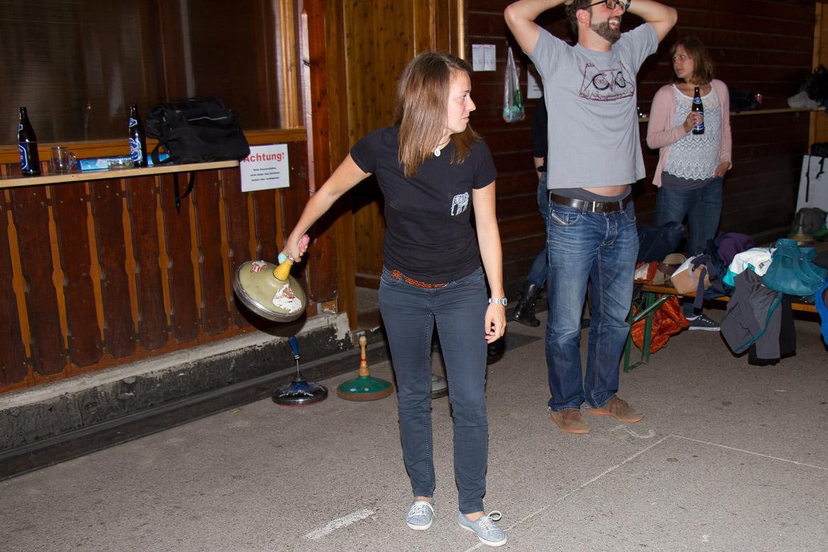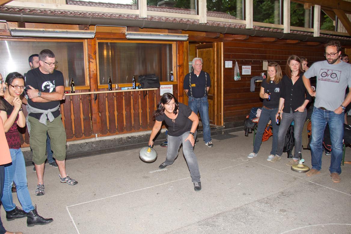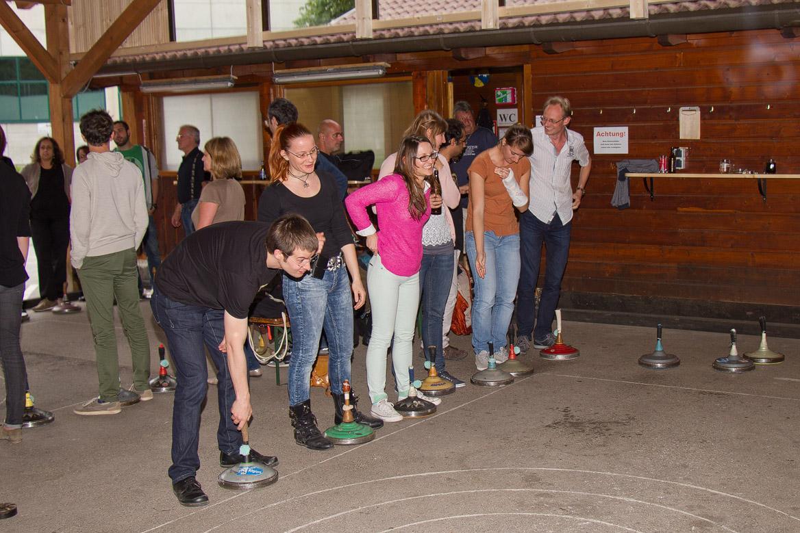 Wir hatten gar nicht so viele Stöcke und spielten auf beiden Bahnen.