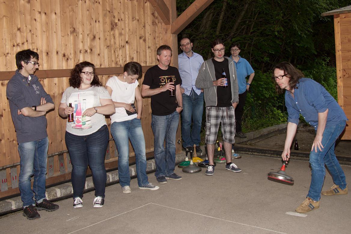 Wir hatten gar nicht so viele Stöcke und spielten auf beiden Bahnen.