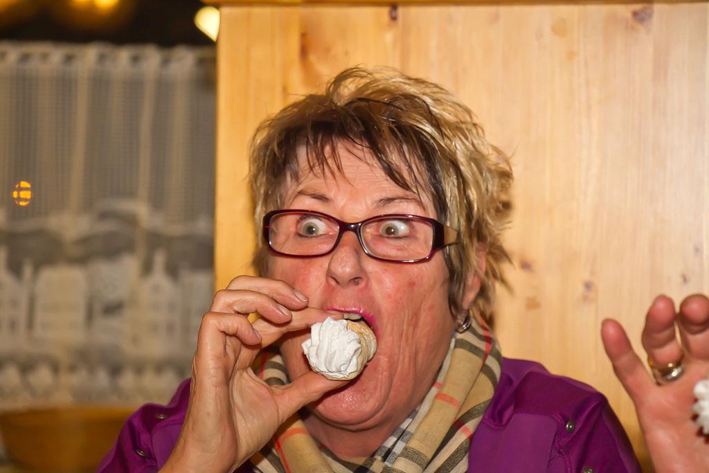 Maria bewirtete uns mit dreierlei heißen Leberkäs vom Nötsch, und Dorfi hat Ihren kürzlichen Geburtstag nachgefeiert. Danke für die Lokalrunde und die köstlichen Schaumrollen.