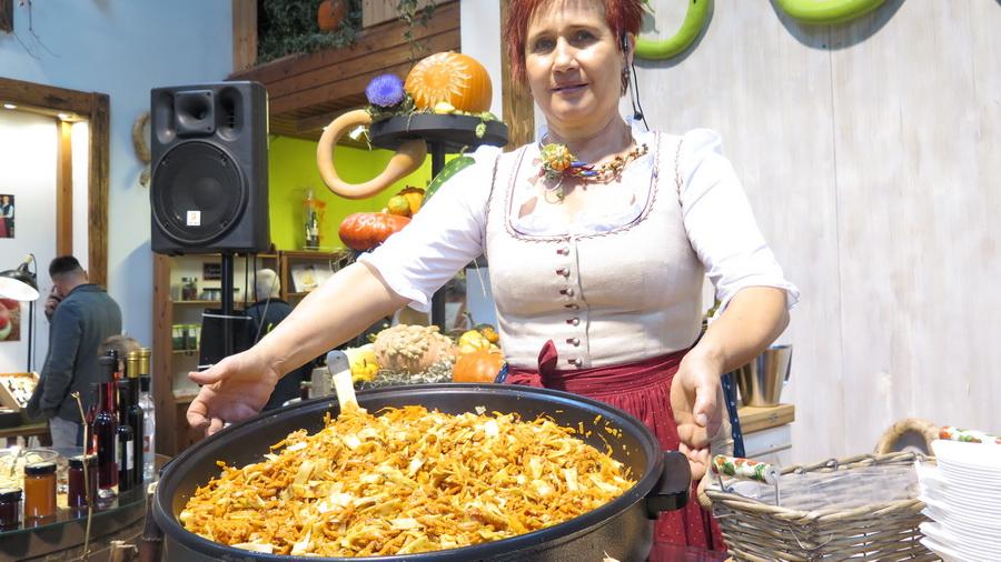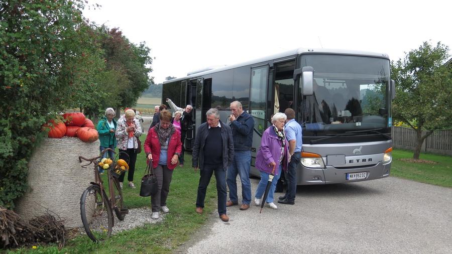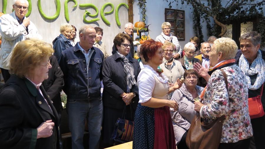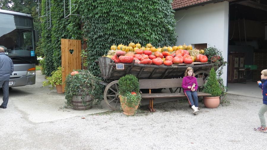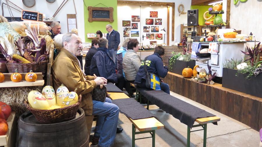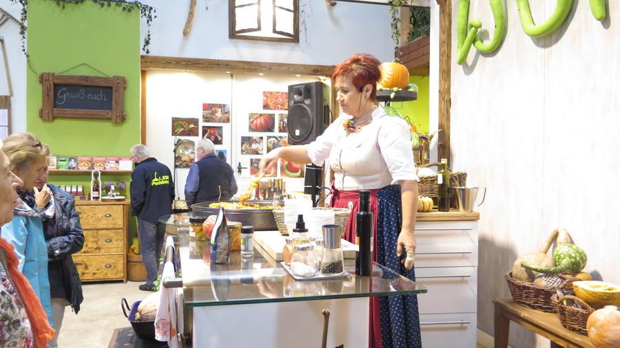Beim amüsanten Schaukochen erfuhren wir alles Wissenswerte über den Kürbis in der Küche. Beim Rundgang durch den Bauerngarten bestaunen wird die mächtigen Riesenkürbisse. Danach folgte die genussreiche Verkostung der hausgemachten Spezialitäten: Von viel prämierten Likören, Bränden, Marmeladen bis hin zum Kürbiskernöl.
